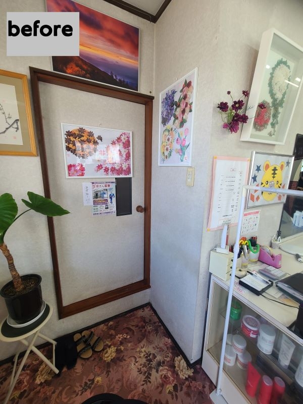 元々トイレは住宅と共有で、今まではお客様がトイレへ行くには、一度住宅へ上がってからトイレに行かなければならない間取りでした。